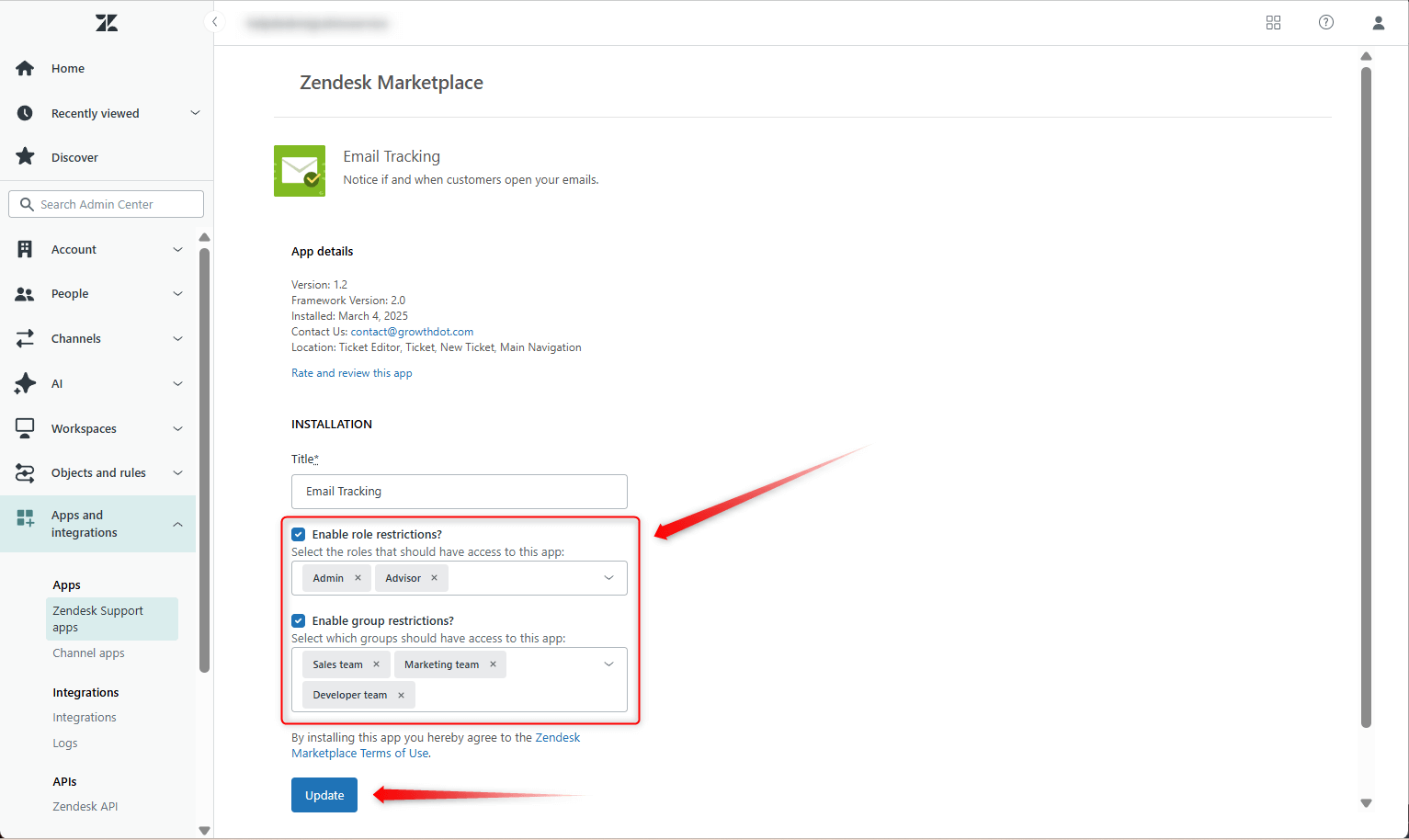 If you have enough agents in your customer support, you might be curious how to restrict access for some of them or give limited possibilities to manage your app. There are two ways to do this. The first one allows you to restrict access to particular agent groups or roles from the Zendesk Admin Center.