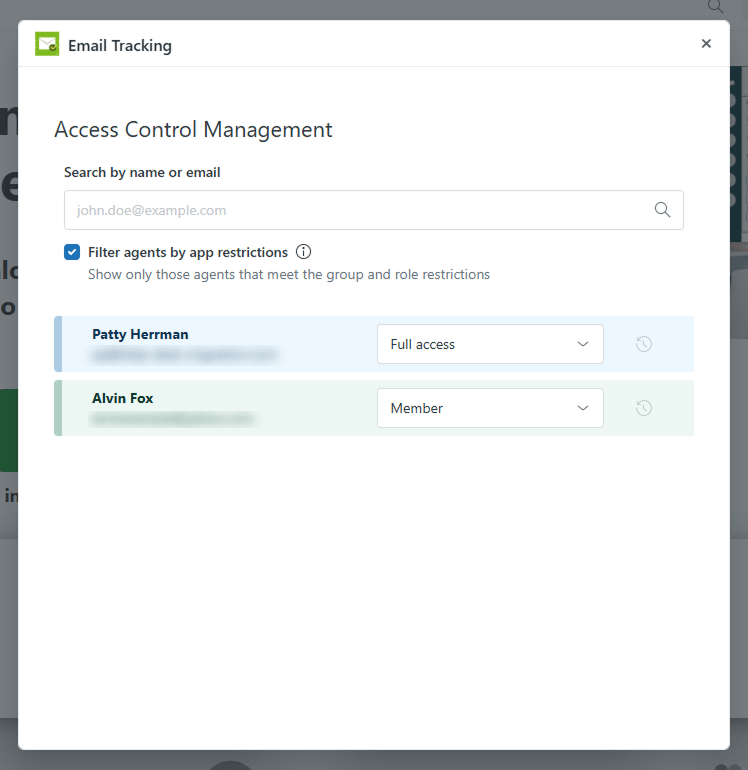 To assign different levels of access to agents in the app, you have only to click the Access Control Management icon on the app's sidebar.